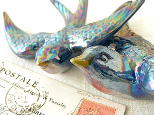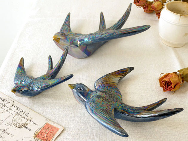 ■fr-a00915 Hirondelles Faience イロンデールパラン&アンファンファイアンスデコール