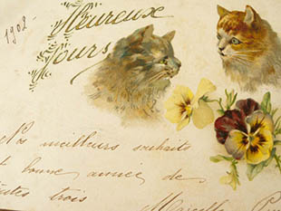 Heureux Jours(ウールジュール/幸せな日々)と1902年と書かれたカルテポスタルには二匹のシャとパンセ(パ