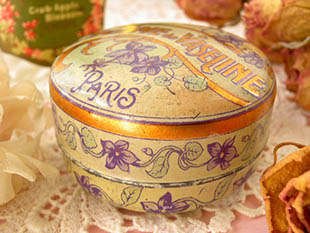 色でParfum des Fleurs(パルファン・ デ・フルール/花の香り)とParisと書かれているのも素敵ですね。フタ