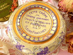 と本体の側面にはヴィオレットの花が ボーダーでデザインされていて底面にはCette Creme se Conserve