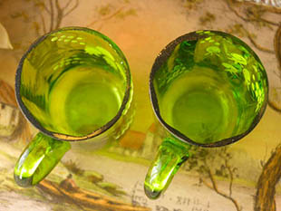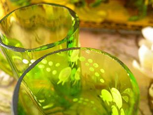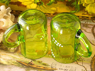 おそらく1910年代にフランスで製造されたガラス製のヴェールエマイユミュゲプティヴェール2アンサンブル