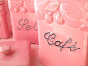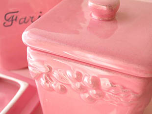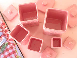 ブルです。こちらは超レアなロゼのフタ付きのキュイズィーヌポ(キッチンポット)の5個のアンサンブル(セッ