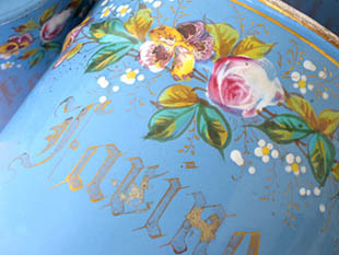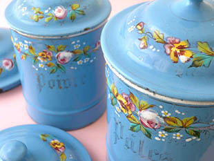 おそらくフランスで1920年代に製造されたEmaillee(エマイユ/ホウロウ)製のロゼローズ&パンセブルーキュ