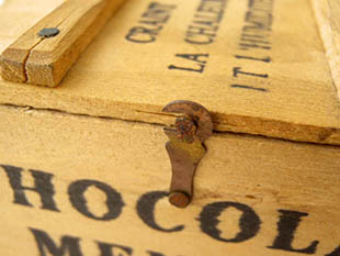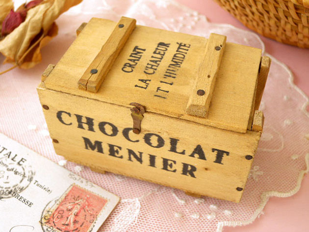 したショコラ(チョコレート)が入っていたボワ(木)製のショコラボワット(ボックス)です。ムニエ氏は薬剤師