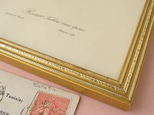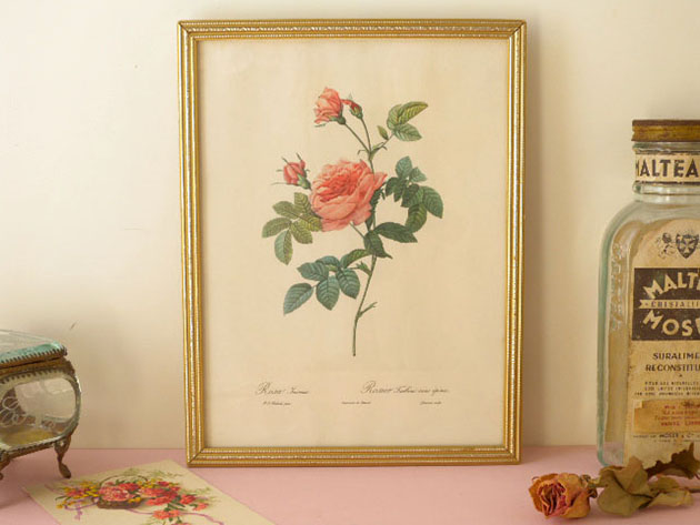 フランスでおそらく1960年代に額装した木製のオールカードル(ゴールドフレーム)に入ったロゼローズボタ