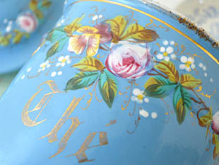 ローズとジャスミーヌのお花と葉の部分は釉薬で盛り絵付けされた立体的なレリーフで作られていてとても