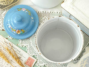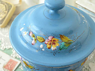 おそらくフランスで1920年代に製造されたEmaillee(エマイユ/ホウロウ)製のロゼローズ&パンセブルーテ