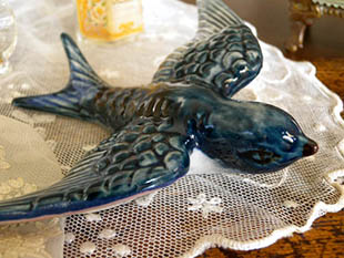 イヴォアール(アイボリー)にブルーフォンセ(ダークブルー)とロゼで彩色されたイロンデール(ツバメ)のアン