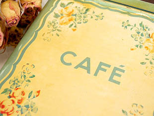 バラの花がデザインされていてオシャレで可愛くてとてもいい感じです。本体にはCafe(カフェ/コーヒー)と