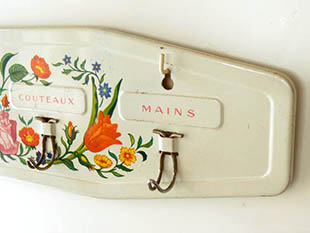 には4個のフックが付いていて左からVaisselle(ヴェッセル/ディッシュ)、Verres(ヴェール/グラス)、