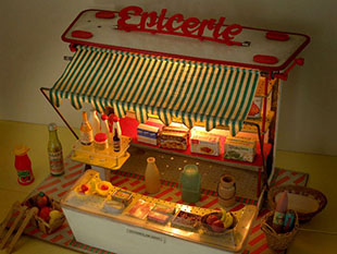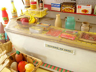 サンブルです。こちらは大変レアなフランスのトイのEpicerie(エピスリー/食料品店)で、お店の屋根にはプ