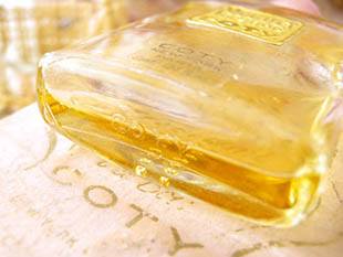 はCoty New York・Paris Cont. .25 fl oz.の表示があります。また、底面にはCotyのエンボスがあります。本