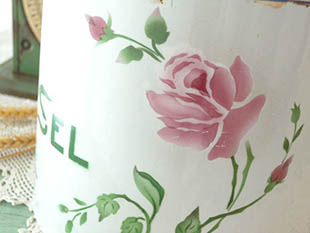 ホウロウ製のブランシュ&ヴェールローズクヴェルクルアンボワセルボワットです。ジャピーフレール社は