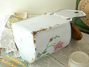グリーンを飾っても素敵ですが、工夫次第でいろいろと楽しく使えそうなフランスホウロウアンティーク雑