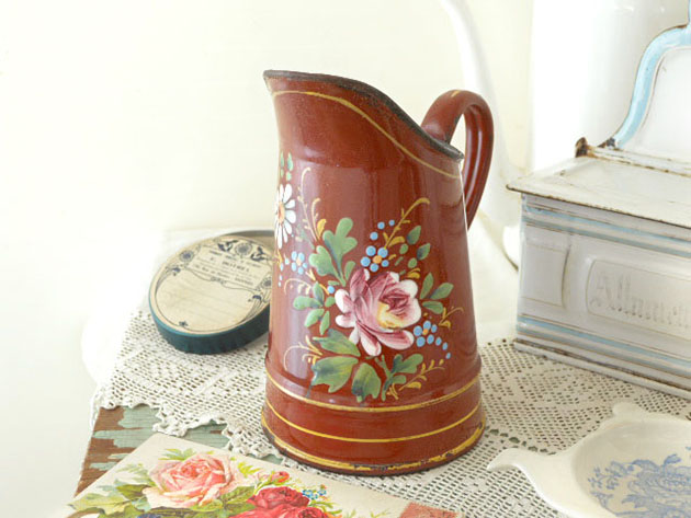 おそらくフランスで1930年代に製造されたホウロウ製のローズ&マルグリットブランピシェです。こちらは