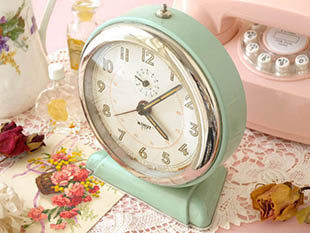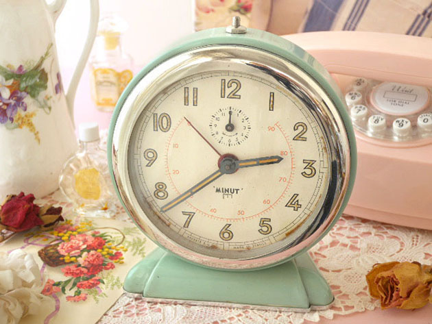 (ミントグリーン)のレヴェイユ(アラームクロック)で、アルジャン(シルバー)で縁取りされた イヴォワール(ア