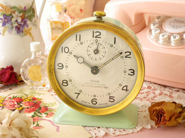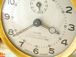 オール(ゴールド)のレヴェイユ(アラームクロック)で、ブランシュ(ホワイト)のダイヤルには1から12までの