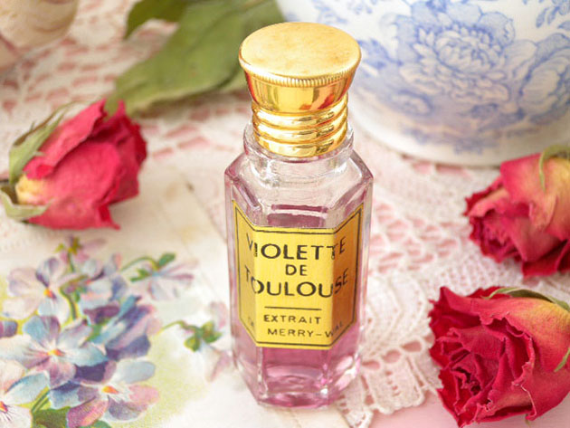 ゴールドの四角いラベルにはViolettes de Toulouse Extrait de Merry-Wal(エクストレ・ドゥ・メリー