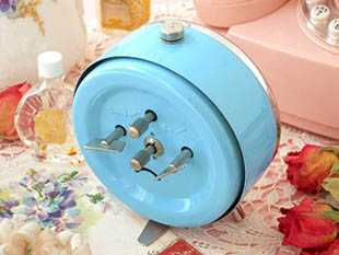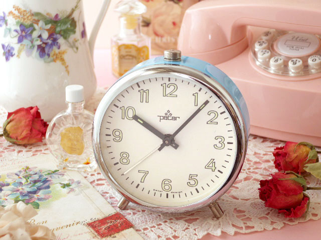 のノブはアラームの設定用で本体の上部にはアラームストップボタンがあります。また、下部には時計の速