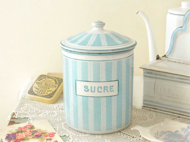 らは超レアなフタ付きのSucre(シュクレ/シュガー)を入れるためのポ(ポット)で、爽やかなブルークレール