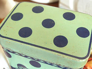 (ポルカドット)模様のチコリーを入れるためのボワット(ボックス)で、ブルーフォンセの四角形の中の三角の