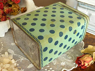 ワ(ポルカドット)模様のファリーヌ(小麦粉)を入れるためのボワット(ボックス)で、ブルーフォンセの四角形