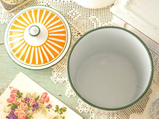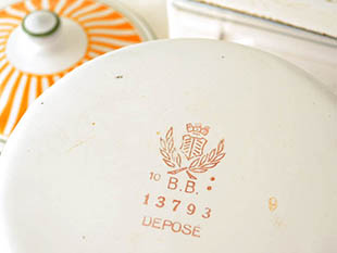 フランスにあるB. B.社がおそらく1930年代に製造したホウロウ製のオランジュ&ブランシュレイユールギル