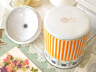 です。こちらは大変レアな中央部分が高く盛り上がったフタの付いたFarine(ファリーヌ/小麦粉)を入れるた