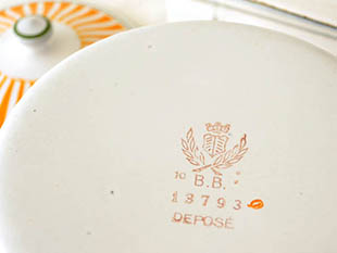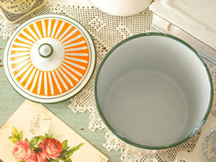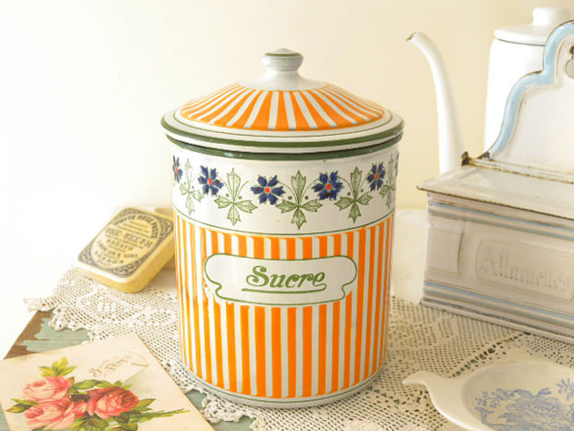 フランスにあるB. B.社がおそらく1930年代に製造したホウロウ製のオランジュ&ブランシュレイユールギル