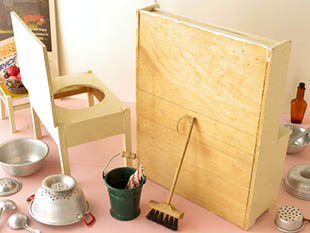 ペンキュッヒェ(ドールキッチン)用に製作された超レアなアイボリーに塗装された木製のクラップトゥッシュ