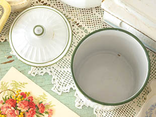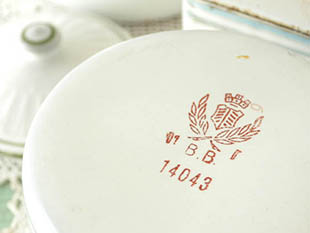 フランスにあるB. B.社がおそらく1930年代に製造したホウロウ製のブランシュ&ヴェールムースギルロンド