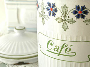(ホワイト)にヴェールムース(モスグリーン)のトリムが美しいポ(ポット)で、本体にはヴェールムースのCafe