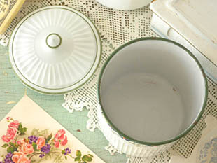 フランスにあるB. B.社がおそらく1930年代に製造したホウロウ製のブランシュ&ヴェールムースギルロンド