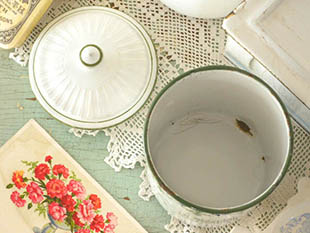 フランスにあるB. B.社がおそらく1930年代に製造したホウロウ製のブランシュ&ヴェールムースギルロンド
