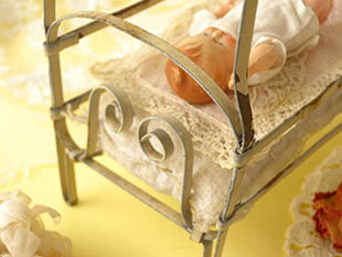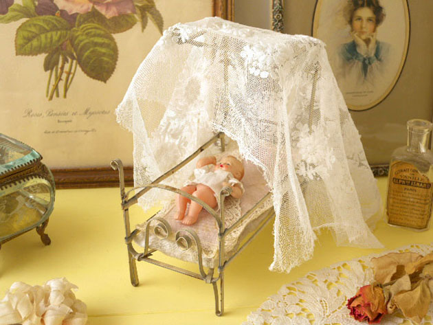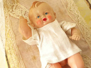 また、付属しているセルロイド製の腕と脚が動くベビープッペを寝かせてあげるととても可愛いですね。こ