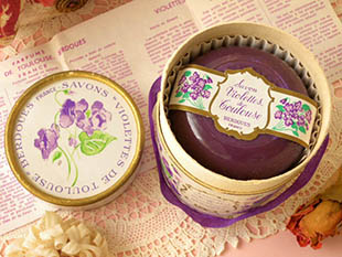 にプレゼントされたサボンの用です。フタを開けるとエレガントで爽やかなヴィオレットの香りが漂いうっ
