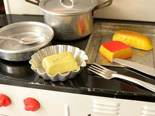 実際にローソクを使ってお湯などを沸かすことは安全性からお奨めしません。陶器のバターとチーズとパン