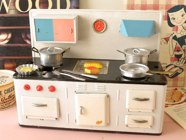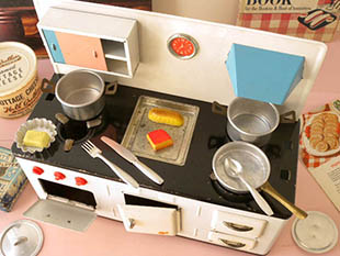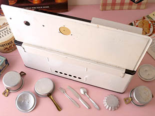 う商品名のキュッヒェン(キッチン)の小物付きのブリキとアルミ製のシュピルツォイグ・コッホヘアーツバッ