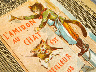 と書かれたアールヌーヴォーの凝った装飾デザインの内側にL'Amidon au Chat est le Meilleur de Tous(猫の