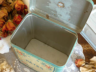 ラベルが破れていて少しだけ残っています。ロゼのローズのお花のイラストとサイアンブルーとクレームの