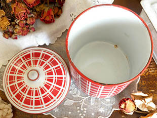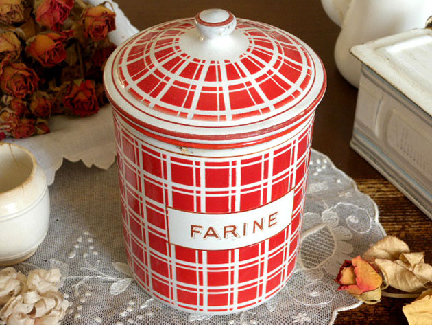 ズィーヌ(キッチン)の小物入れに便利ですが工夫次第でいろいろと楽しく使えそうなフランスのホウロウアン