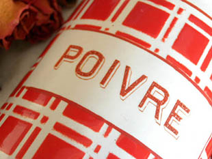 アなフタ付きのPoivre(ポワブル/ペッパー)を入れるためのポ(ポット)で、爽やかなブランシュ(ホワイト)地に