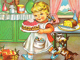 ちゃんが一生懸命にケーキを作っている姿が可愛くてとてもいい感じです。デザインされているお話は「1.