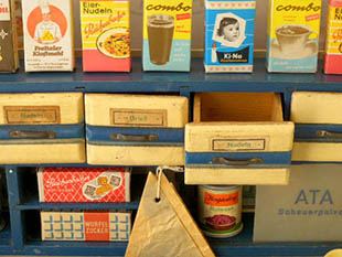 レーベンスミッテルゲシャフト(食料品店)のセッツ(セット)で、本体の棚の中央にはメタル製の取っ手が付い