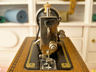 られた足踏みタイプのニーマシーナ(ミシン)で、ずっしりと重いシュヴァルツ(ブラック)の本体にはゴルト