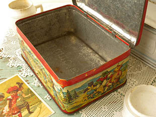 山詰め合わせされたボックス)と書かれているようです。また、缶を製造したのはドイツとの国境沿いのスト
