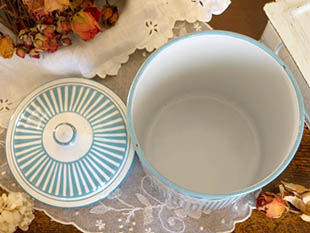 (ポット)で、爽やかなブランシュ(ホワイト)地にブルーのエンボスストライプの柄にブルーのSucreのカーシ