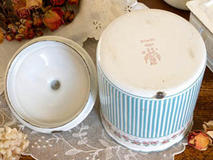 フランスにあるB. B.社がおそらく1930年代に製造したホウロウ製のロゼローズギルロンドブルー&ブラン