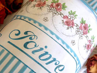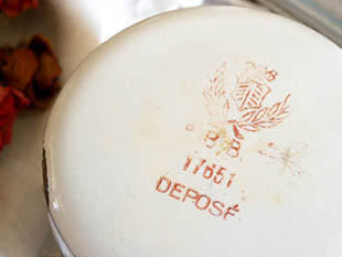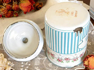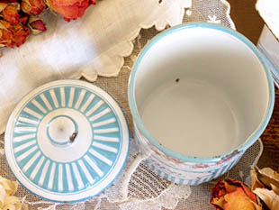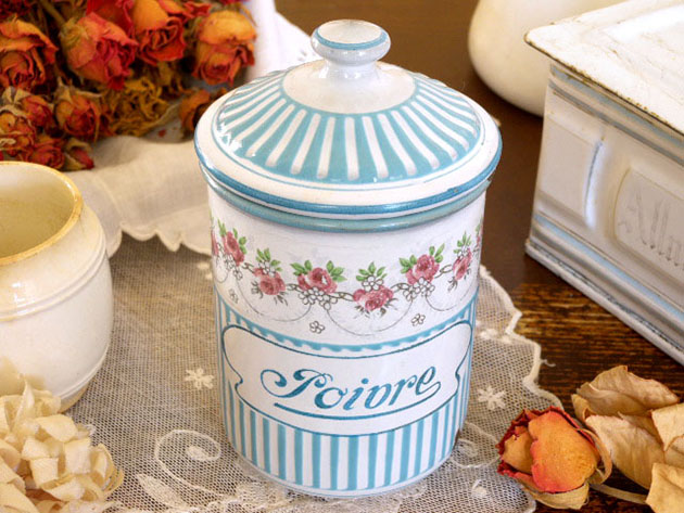フランスにあるB. B.社がおそらく1930年代に製造したホウロウ製のロゼローズギルロンドブルー&ブラン