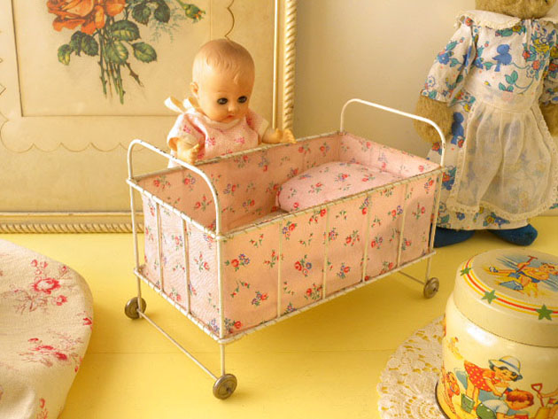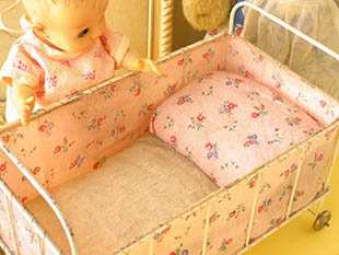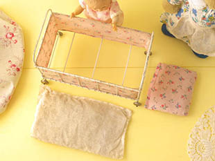 大きいのでビスク(磁器)製のプッペ(ドール)やシュタイフ社のテディベアなどを寝かせてあげても可愛いです